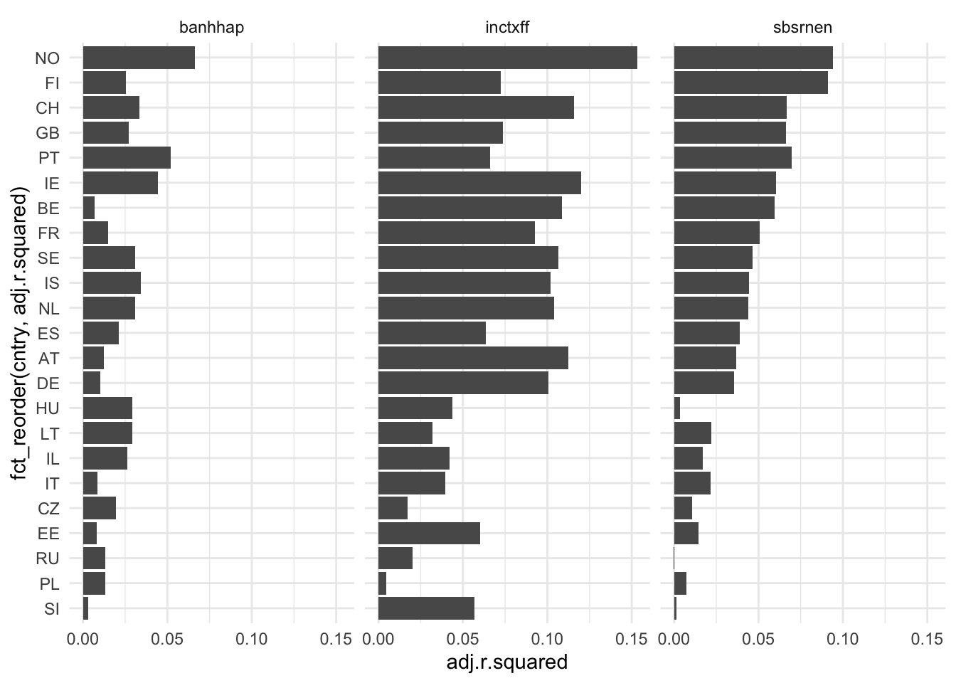 ggplot(aes(fct_reorder(cntry, adj.r.squared), adj.r.squared)) +